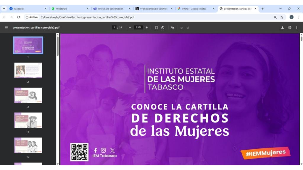 El Instituto Estatal de las Mujeres a través de la Subdirección de Fortalecimiento Territorial, llevó a cabo la Conferencia: "Cartilla de los Derechos Humanos de la Mujeres", dirigido a servidoras y servidores públicos del Ayuntamiento del Municipio de Jalpa de Méndez, con el objetivo de concientizar y promover los derechos de las mujeres en México, así como distribuir en todo el país para que las mujeres conozcan y exijan el cumplimiento de sus derechos.