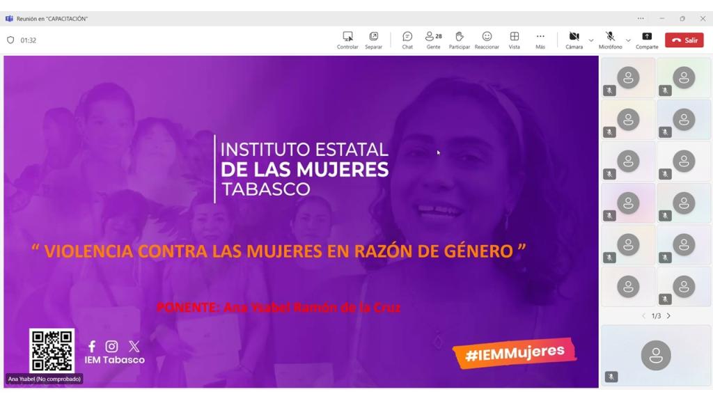 El Instituto Estatal de las Mujeres a través de la Subdirección de Fortalecimiento Territorial, llevó a cabo la Capacitación: "Violencia contra las Mujeres en Razón de Género", dirigido a las maestras y maestros del Instituto Tecnológico Superior del Municipio de Macuspana, con el objetivo conocer desde la perspectiva de género las causas-efectos de la violencia para obtener herramientas que permitan la generación de alternativas para saber cómo prevenirla y atenderla en nuestro entorno inmediato.