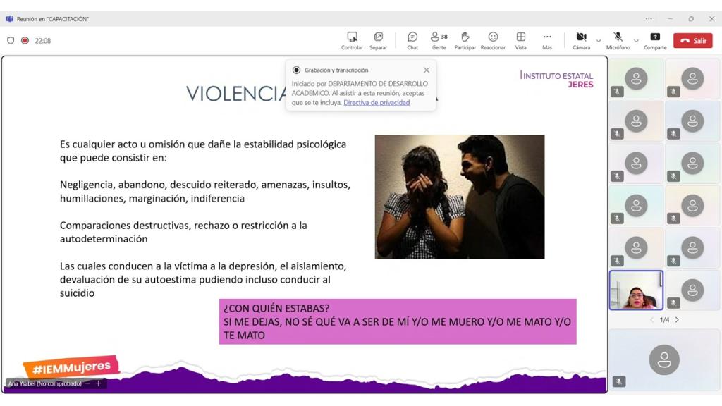 El Instituto Estatal de las Mujeres a través de la Subdirección de Fortalecimiento Territorial, llevó a cabo la Capacitación: "Violencia de Género", dirigido a servidoras y servidores públicos de la Secretaria de Desarrollo y Agropecuario y Pesca, con el objetivo de fortalecer la formación inicial para el desarrollo de competencias con Perspectiva de Género al personal de la policía municipal, para garantizar la debida atención a las mujeres víctimas de la violencia.