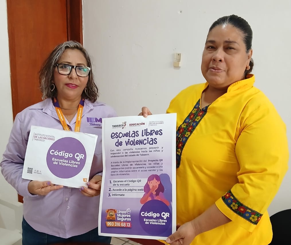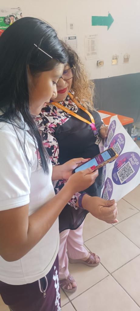El Instituto Estatal de las Mujeres través de la Subdirección de Fortalecimiento Territorial, llevo a cabo la: Colocación: “CÓDIGOS QR ESCUELAS LIBRES DE VIOLENCIA”, dirigida a las alumnas de la Escuela Secundaria No. 9 del Municipio del Centro, con el objetivo de prevenir y responder a las violencias hacia las niñas y adolescentes del Estado de Tabasco al proporcionar información sobre el acoso escolar y los tipos de violencias.