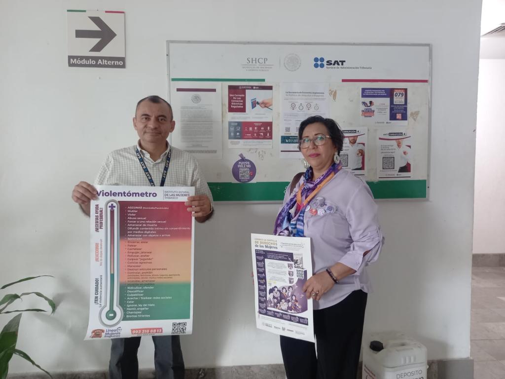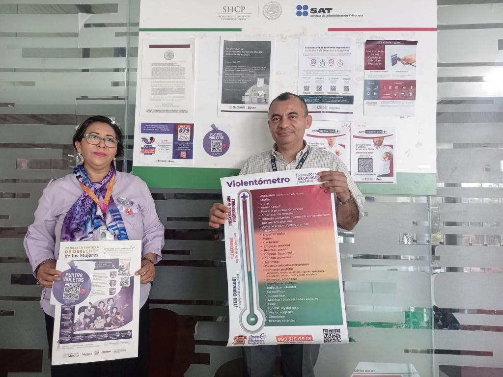 La Subdirección de Fortalecimiento Territorial, llevó a cabo la Colocación de Códigos QR “Puntos Violetas Informativos”, el día 13 de marzo del 2026, en las instalaciones del Servicio de Administración Tributaria “1”, Centro, Tabasco.