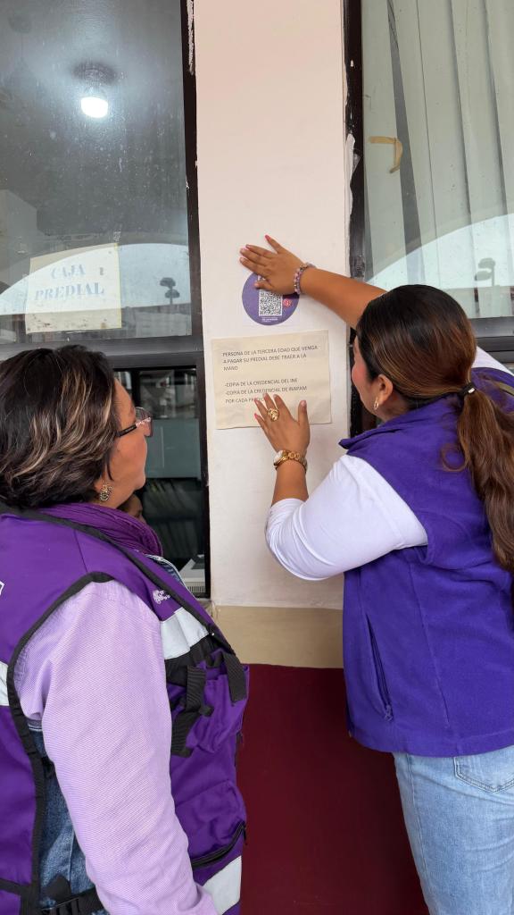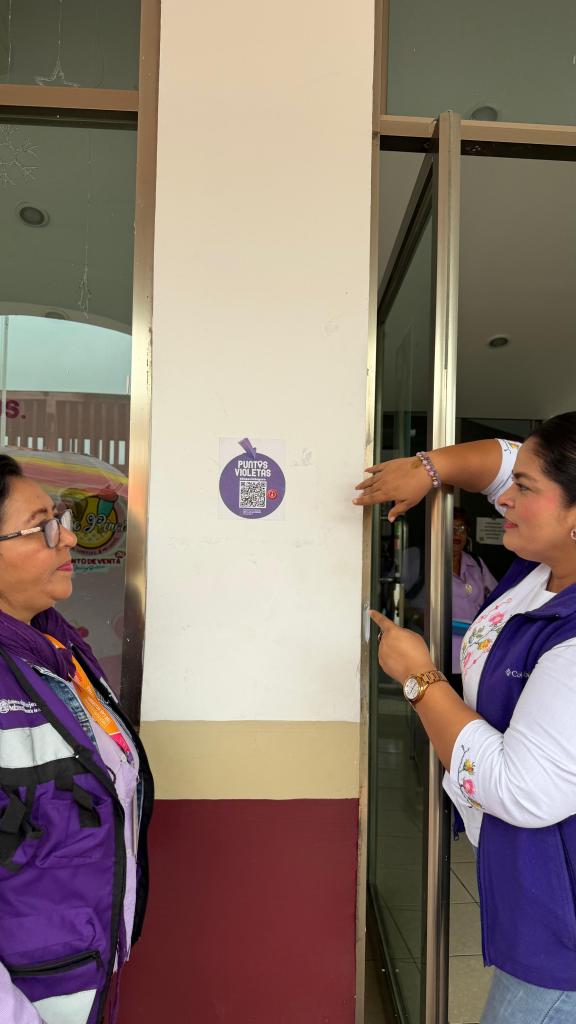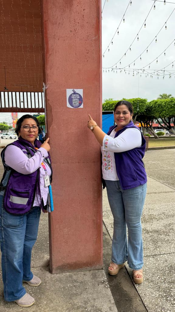 La Subdirección de Fortalecimiento Territorial, llevó a cabo la Colocación de Códigos QR “Puntos Violetas Informativos”, el día 18 de marzo del 2026, en las zonas de mayor afluencia del Centro Histórico de Huimanguillo, abarcando el Parque Municipal, el H. Ayuntamiento y la Casa de la Cultura Manuel R. Mora Tabasco.