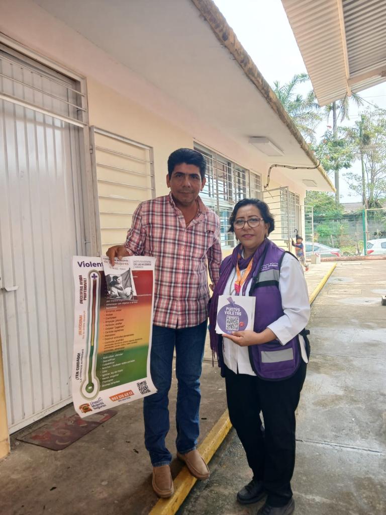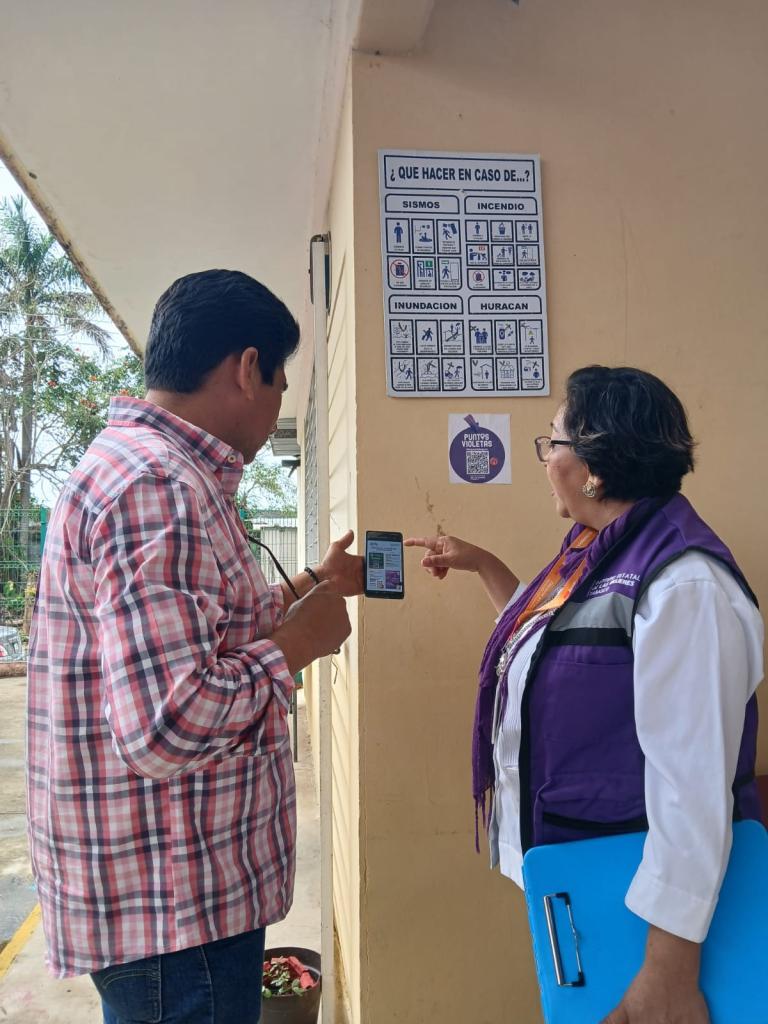 La Subdirección de Fortalecimiento Territorial, llevó a cabo la Colocación de Códigos QR “Puntos Violetas Informativos”, el día 19 de marzo del 2026, en la Escuela Primaria Ciro Esteban Pérez Torres, perteneciente al Municipio de Jalapa, Tabasco.
