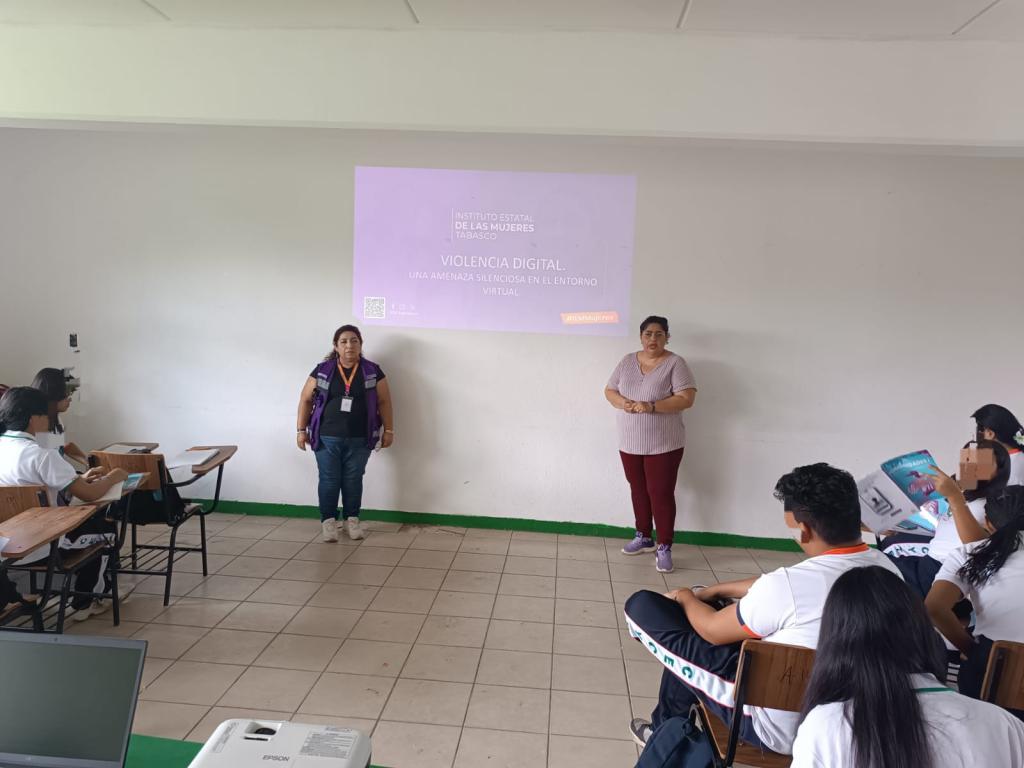 La Subdirección de Fortalecimiento Territorial, llevó a cabo la Conferencia: “Violencia Digital”, el día 21 de octubre de 2025, dirigida a la comunidad estudiantil del Colegio de Estudios Científicos y Tecnológicos, Plantel No. 9, ubicado en la Col. Pueblo Nuevo, Chichicapa, Comalcalco, Tabasco. Con el objetivo de brindar a las y los estudiantes herramientas conceptuales y prácticas para identificar, prevenir y actuar frente a las distintas formas de violencia digital, con el fin de fomentar el uso responsable, seguro y consciente de las tecnologías de la información y la comunicación en su vida cotidiana.