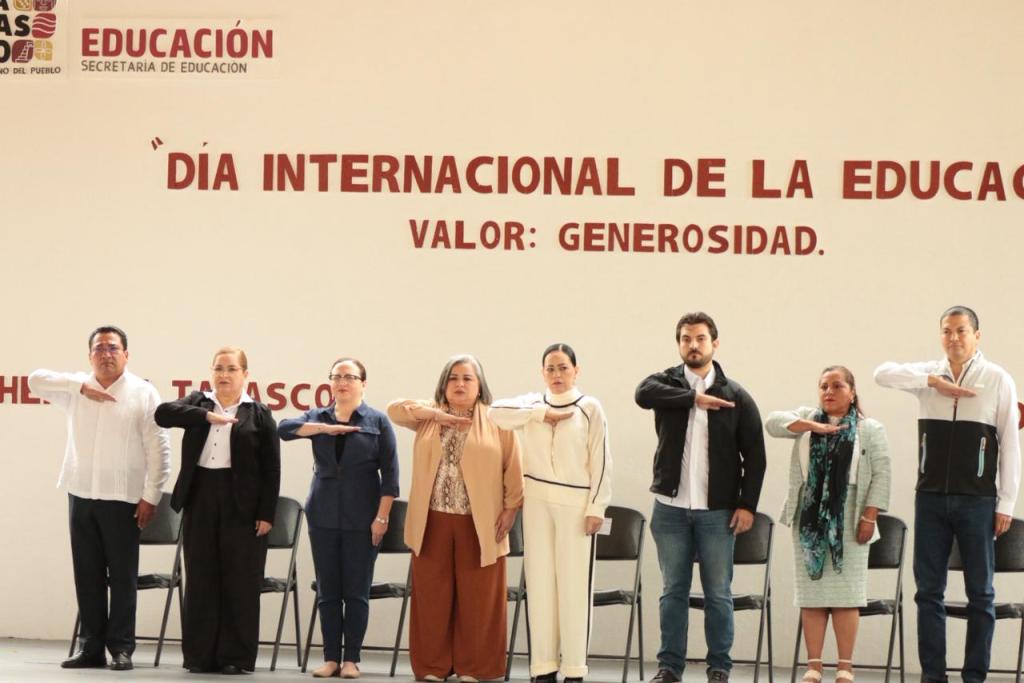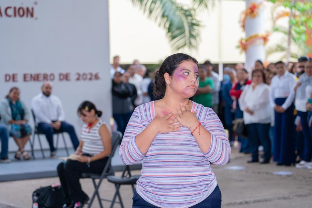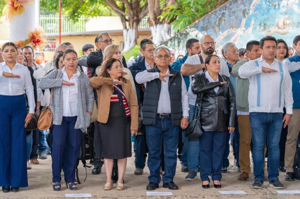 “La educación que impulsa el Gobierno del Pueblo se construye desde el territorio; se trata de una política que entiende a la escuela y al servicio educativo como espacios para la formación de ciudadanía”, afirmó la secretaria de Educación, Patricia Iparrea Sánchez, al encabezar el acto cívico que se realiza cada mes en las instalaciones de esta dependencia, en el que docentes, personal de apoyo y asistencia a la educación, así como estudiantes, rinden honores al Lábaro Patrio.