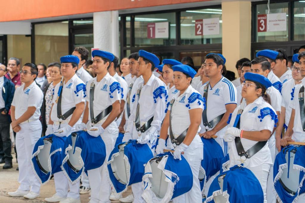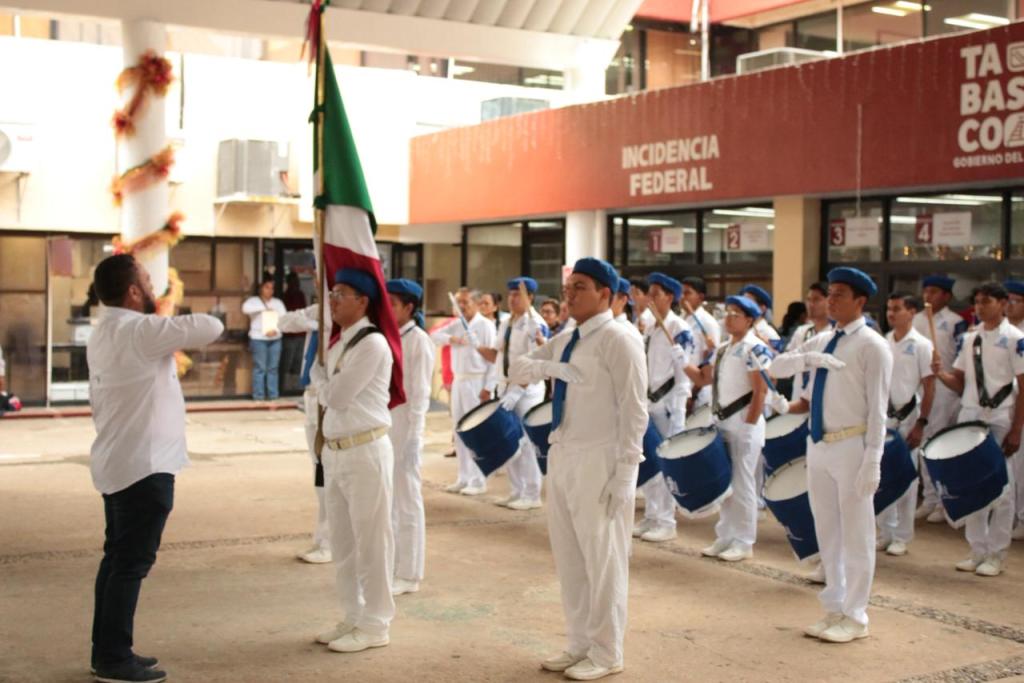 Atestiguaron también este acto cívico, desarrollado en la Plaza de la Cultura de la SETAB, el coordinador general de Planeación, Evaluación e Infraestructura Educativa, Rashid Valdez Dagdug; la directora de la Escuela Estatal de Música, Aida Mayo Hernández; la diputada local, María Félix García Álvarez.