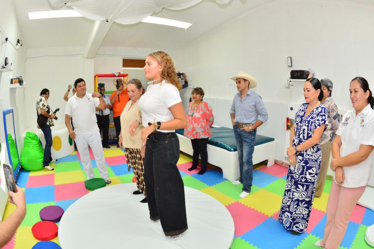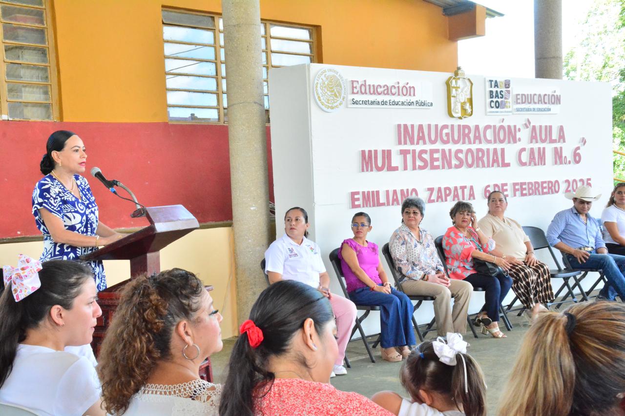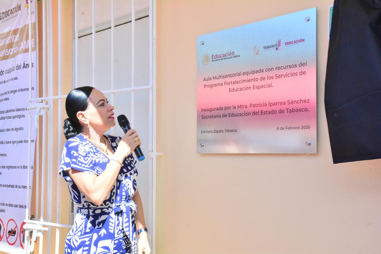 La secretaria de Educación, Patricia Iparrea Sánchez, inauguró el aula multisensorial en el Centro de Atención Múltiple (CAM) No. 06 ubicado en el municipio de Emiliano Zapata, donde se atiende a más de 55 niñas, niños y adolescentes con necesidades educativas especiales.