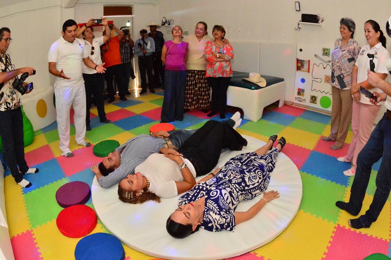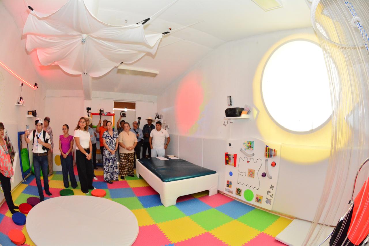 “Esta aula multisensorial no solo representa una infraestructura moderna y equipada, sino una oportunidad para transformar vidas, para abrir puertas y para garantizar que la inclusión no sea solo un concepto, sino una realidad palpable en nuestras escuelas”, remarcó Iparrea Sánchez acompañada de la directora de Educación Especial, María Eugenia Deantes Salazar, directora de Educación Especial, así como de la encargada de la Dirección General de Administración, Rosario Guadalupe Alfaro Moscoso.