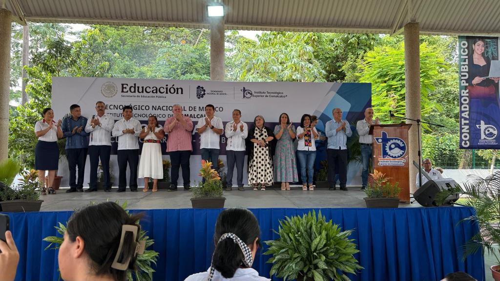 En representación de la secretaria de Educación, Patricia Iparrea Sánchez, la subsecretaria de Educación Media y Superior, Anabel Suárez Jener, encabezó el acto de inauguración del ciclo escolar 2025-2026 del Tecnológico Nacional de México (TecNM) Campus Comalcalco, quien destacó la importancia de fortalecer la educación superior con identidad, pertinencia y sentido de pertenencia, orientado a consolidar la calidad educativa.