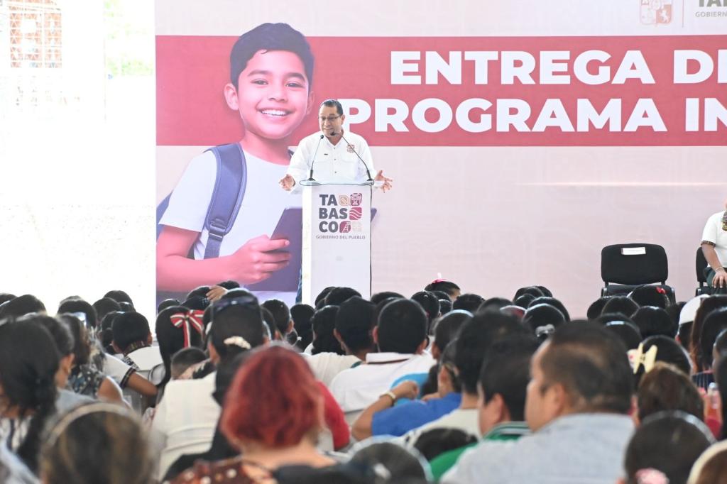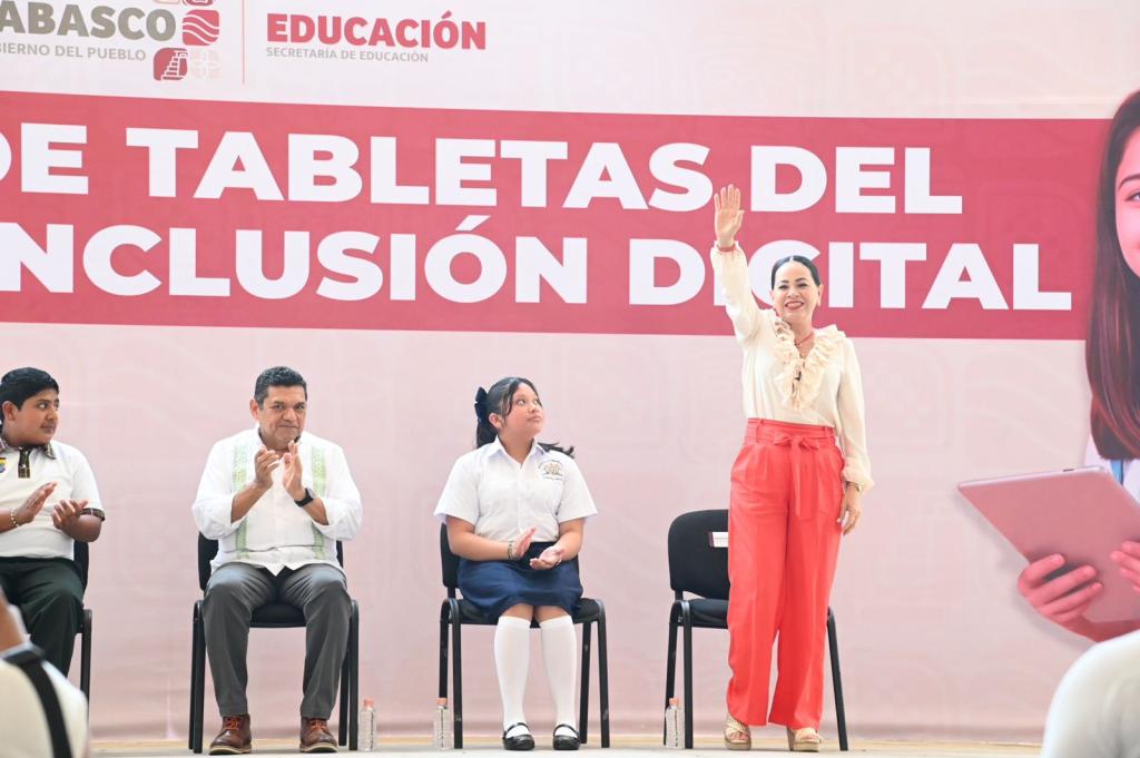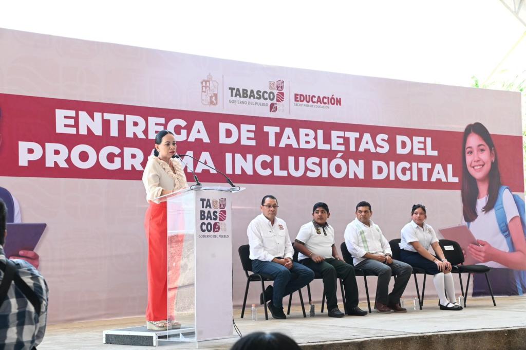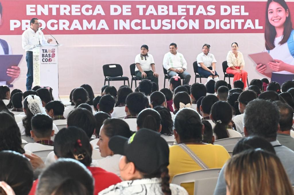 Al destacar que el Gobierno del Pueblo cumplió su meta de entregar 42 mil 851 tabletas electrónicas a estudiantes de primero de secundaria en este año, el gobernador Javier May Rodríguez resaltó que en dos años se ha fortalecido la educación de más de 165 mil estudiantes de este nivel, quienes ya gozan de ese dispositivo que, en esta era digital, es fundamental para que nadie se quede afuera ni nadie se quede atrás.