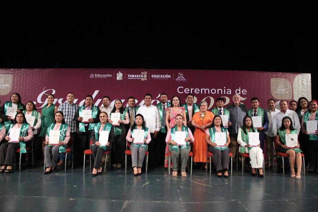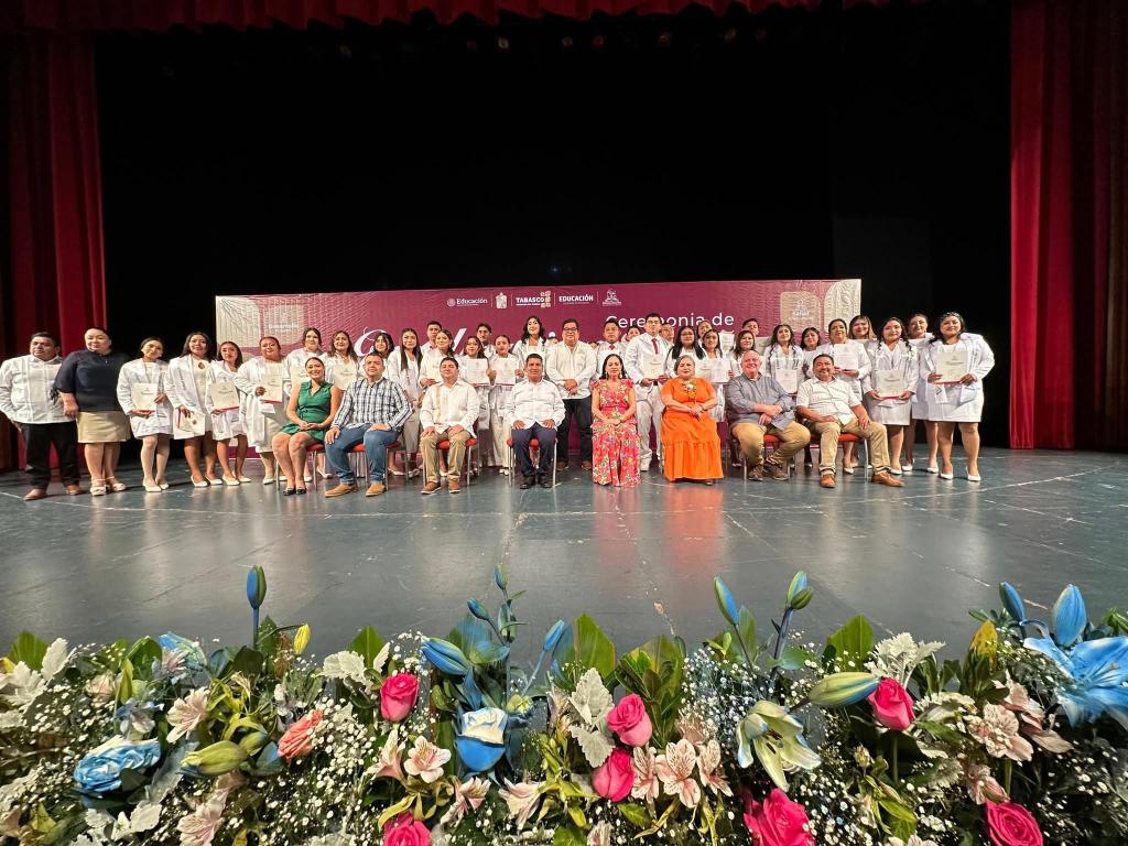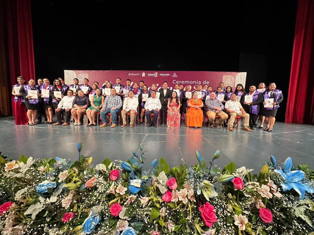 Al encabezar este acto, la secretaria de Educación, Patricia Iparrea Sánchez, expresó su felicitación a las egresadas y los egresados, destacando que la educación intercultural representa una vía legítima para construir un Tabasco con identidad, más justo, equitativo y profundamente humano.
