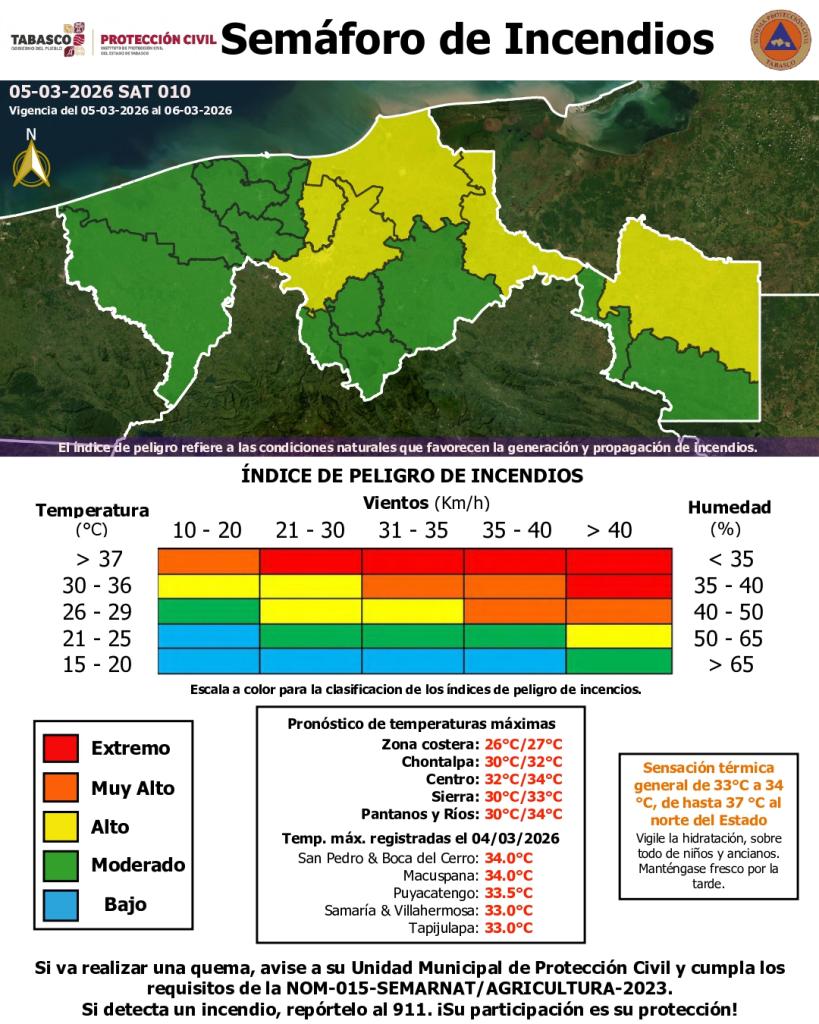 Noticias Compartir en: ¡Enlace copiado! Público General | 5 Marzo, 2026 Semáforo de Incendios - 05/03/2026