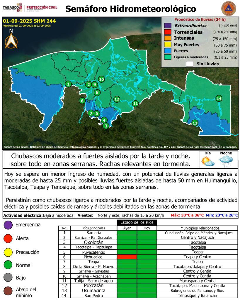 Noticias Compartir en: ¡Enlace copiado! Público General | 1 Septiembre, 2025 Semáforo Hidrometeorológico y Niveles de Ríos - 01/09/2025
