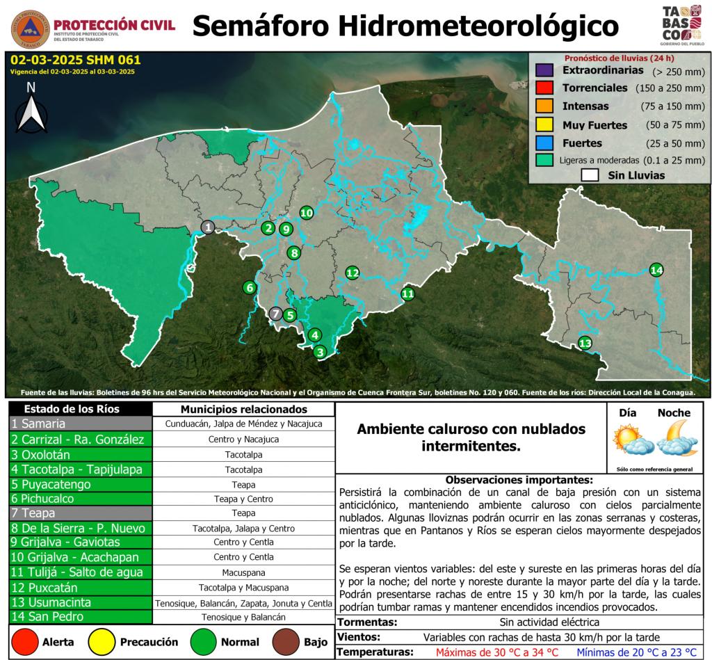Semáforo Hidrometeorológico y Niveles de Ríos - 02/03/2025