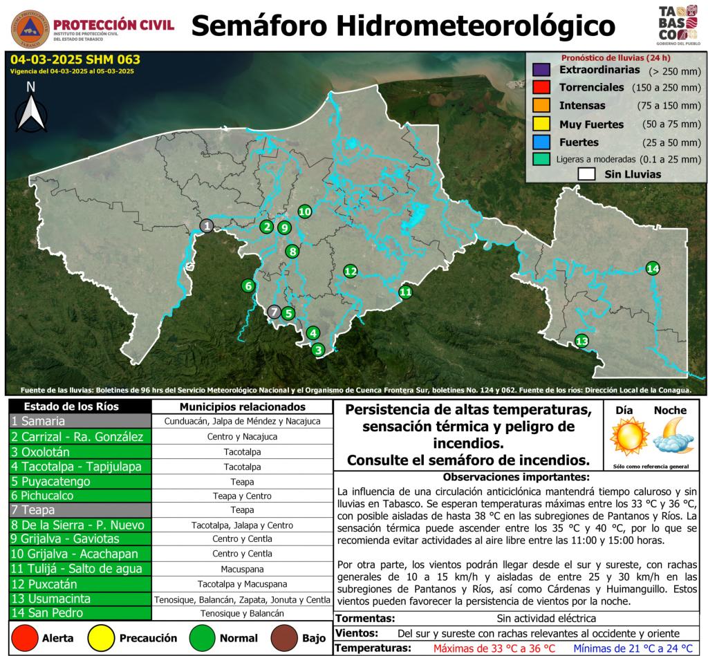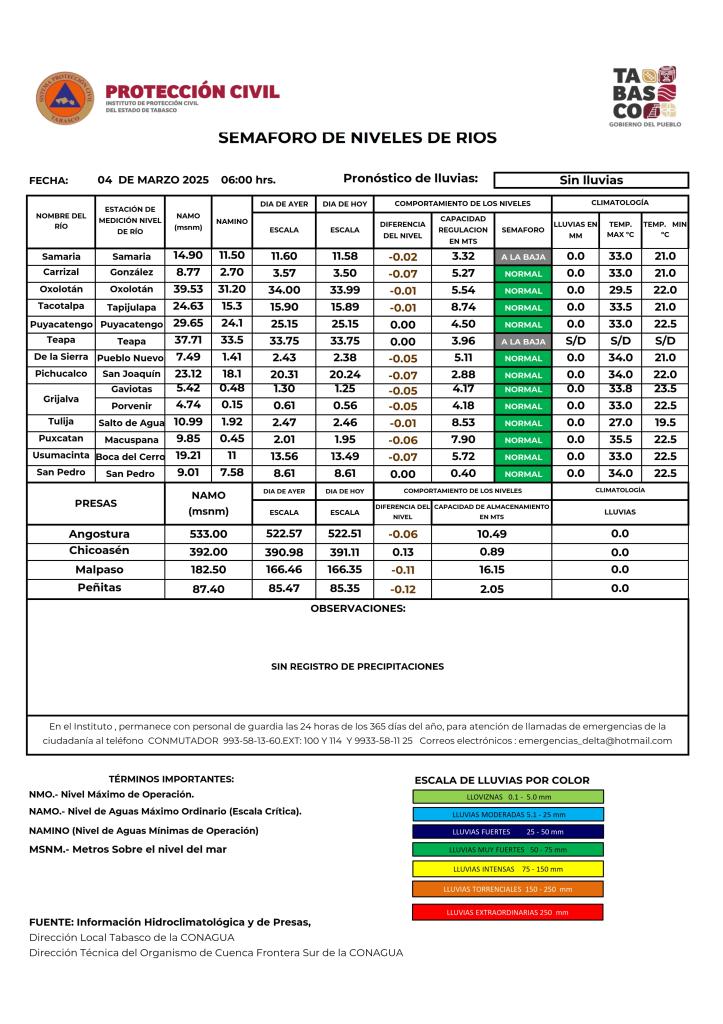 Semáforo Hidrometeorológico y Niveles de Ríos - 04/03/2025