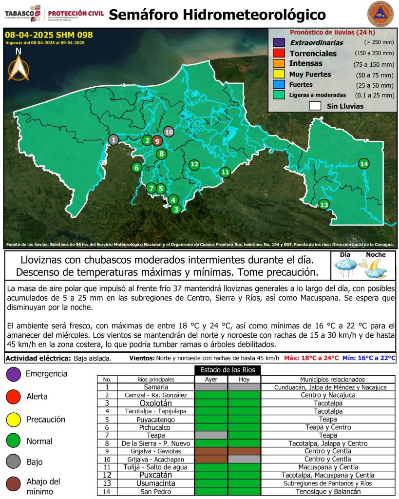 Semáforo Hidrometeorológico y Niveles de Ríos - 08/04/2025