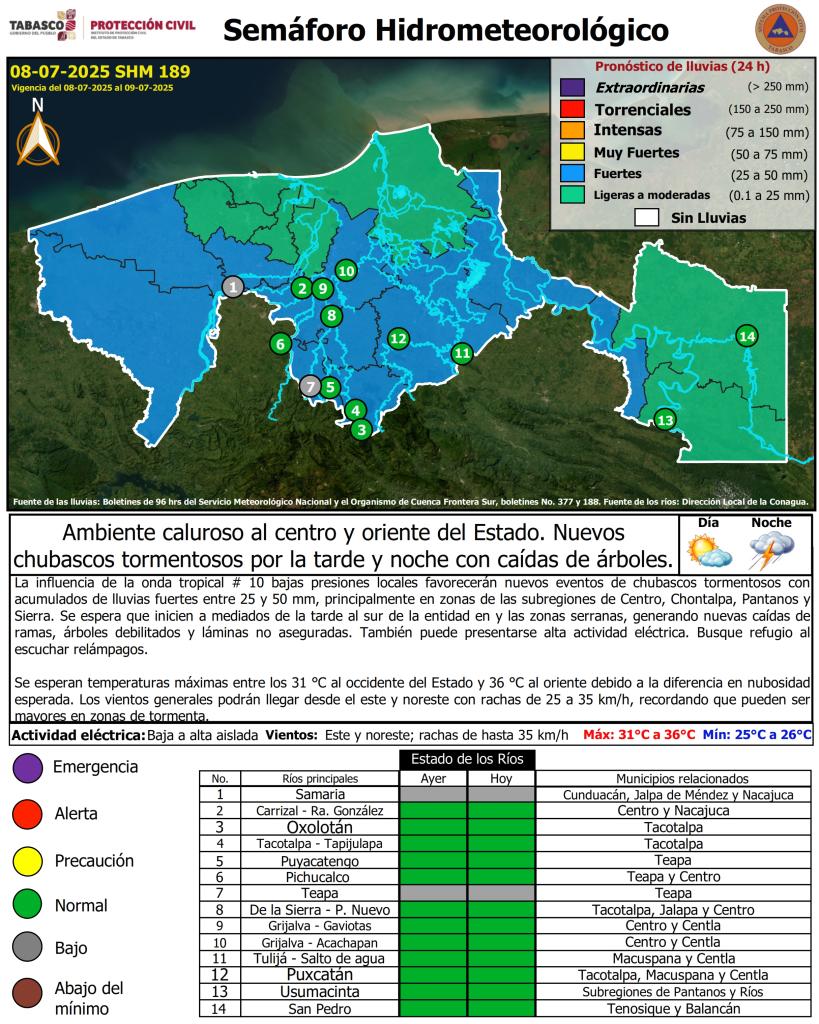 Semáforo Hidrometeorológico y Niveles de Ríos - 08/07/2025
