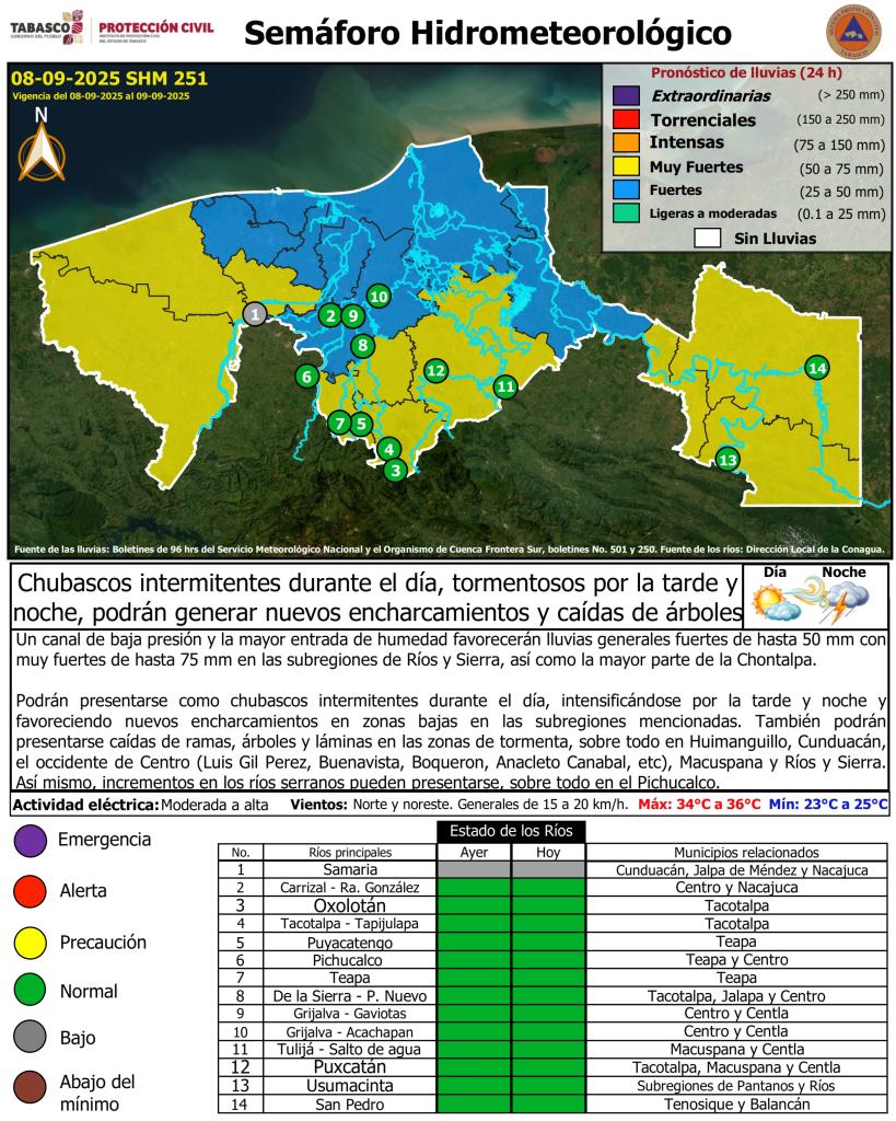 Semáforo Hidrometeorológico y Niveles de Ríos - 08/09/2025