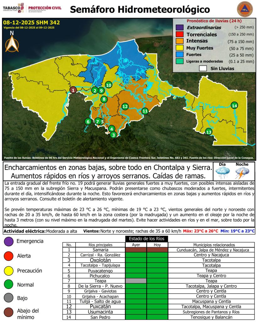 Noticias Compartir en: ¡Enlace copiado! Público General | 8 Diciembre, 2025 Semáforo Hidrometeorológico y Niveles de Ríos - 08/12/2025
