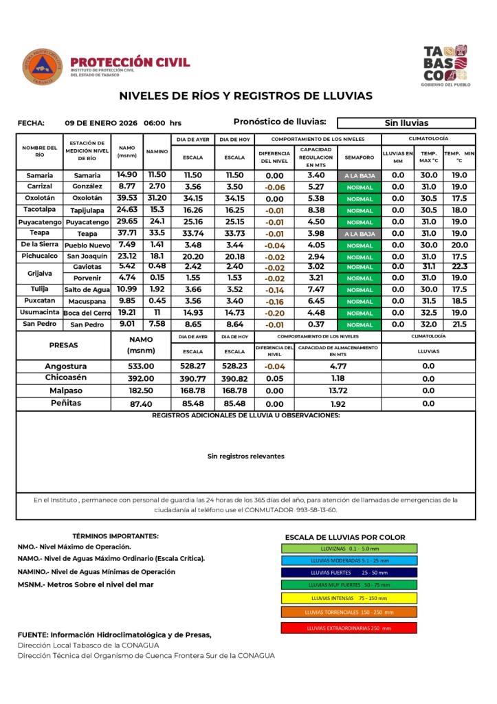 Semáforo Hidrometeorológico y Niveles de Ríos - 09/01/2026
