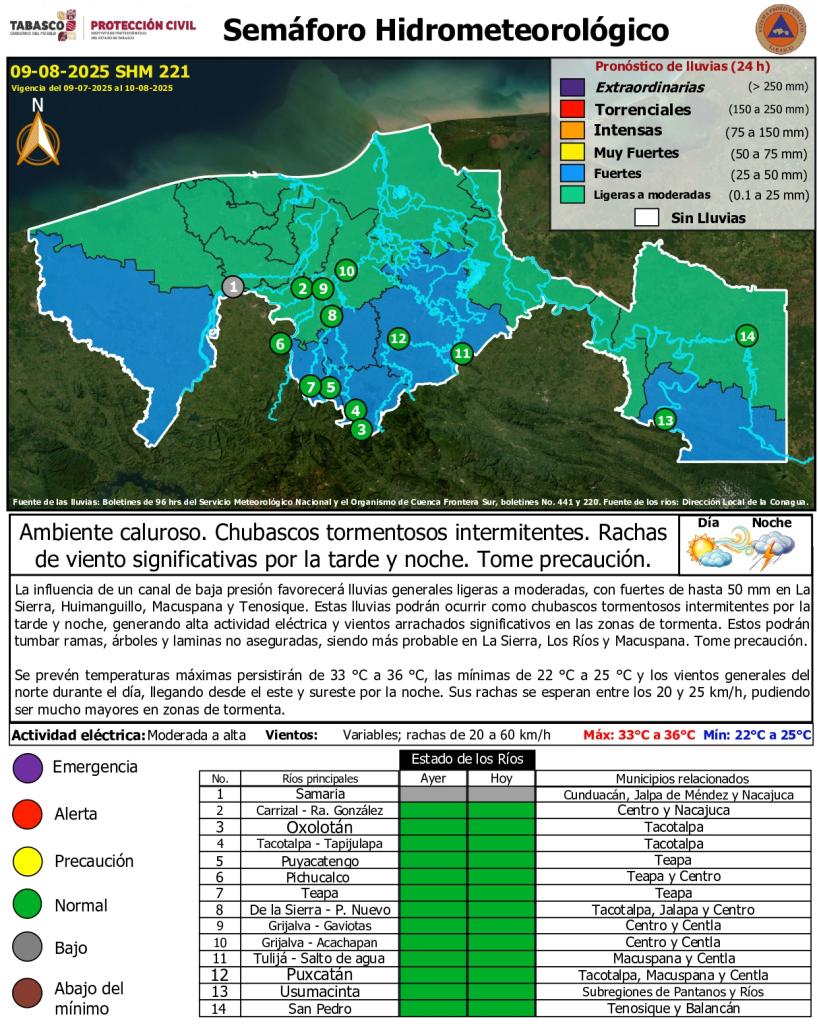 Semáforo Hidrometeorológico y Niveles de Ríos - 09/08/2025