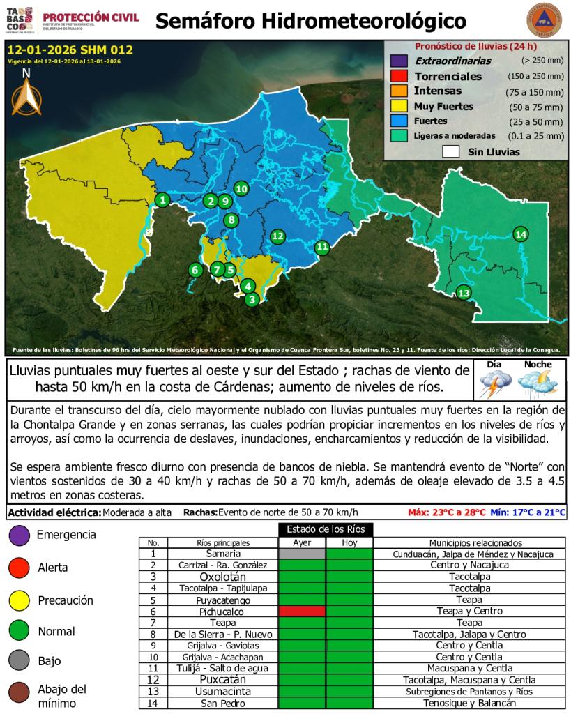 Semáforo Hidrometeorológico y Niveles de Ríos - 12/01/2026