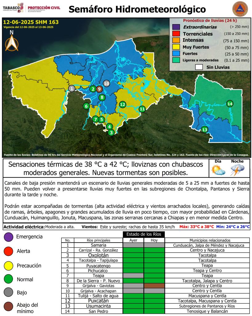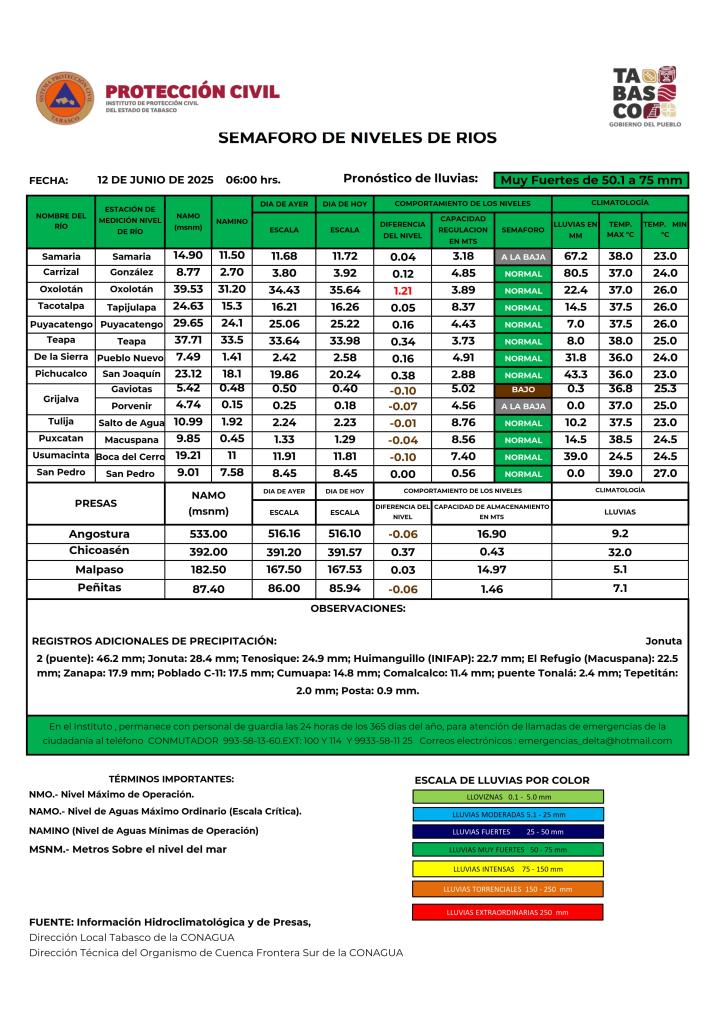 Semáforo Hidrometeorológico y Niveles de Ríos - 12/06/2025