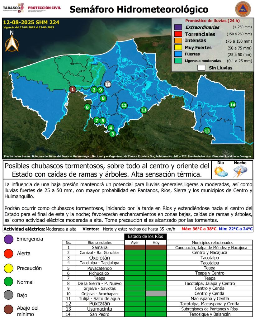 Semáforo Hidrometeorológico y Niveles de Ríos - 12/08/2025