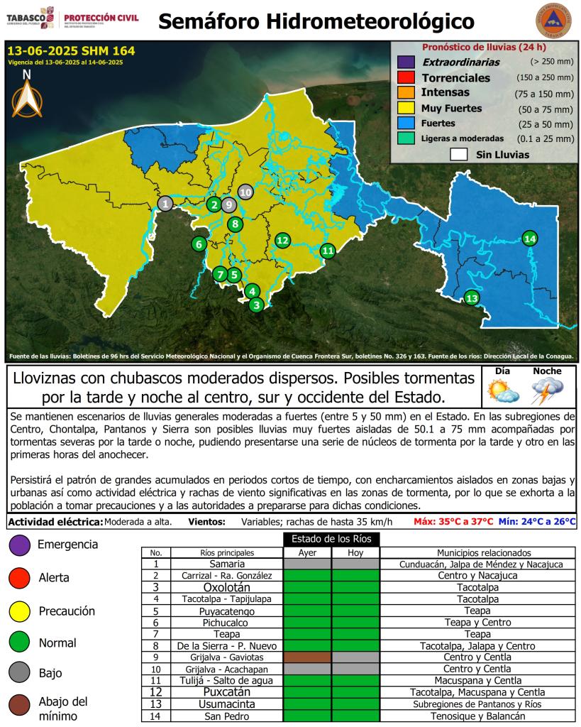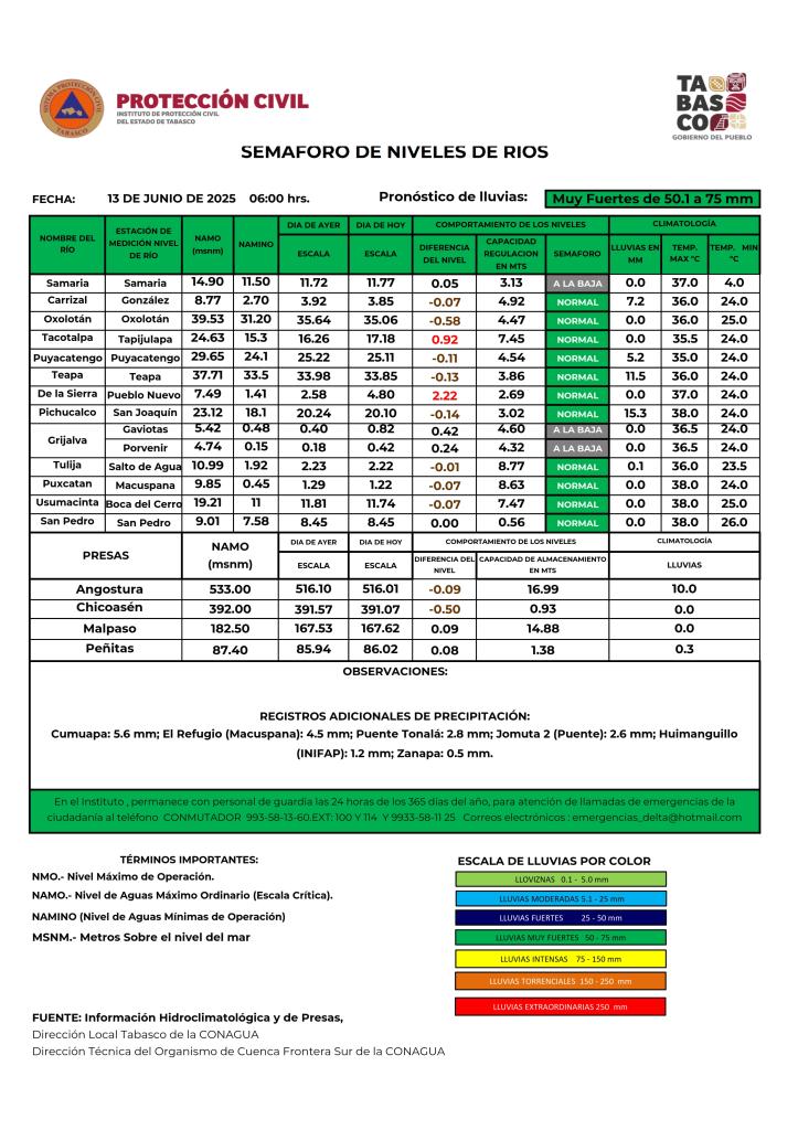 Semáforo Hidrometeorológico y Niveles de Ríos - 13/06/2025