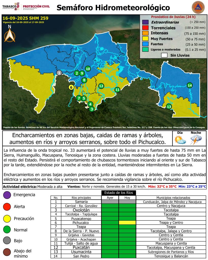 Noticias Compartir en: ¡Enlace copiado! Público General | 16 Septiembre, 2025 Semáforo Hidrometeorológico y Niveles de Ríos - 16/09/2025