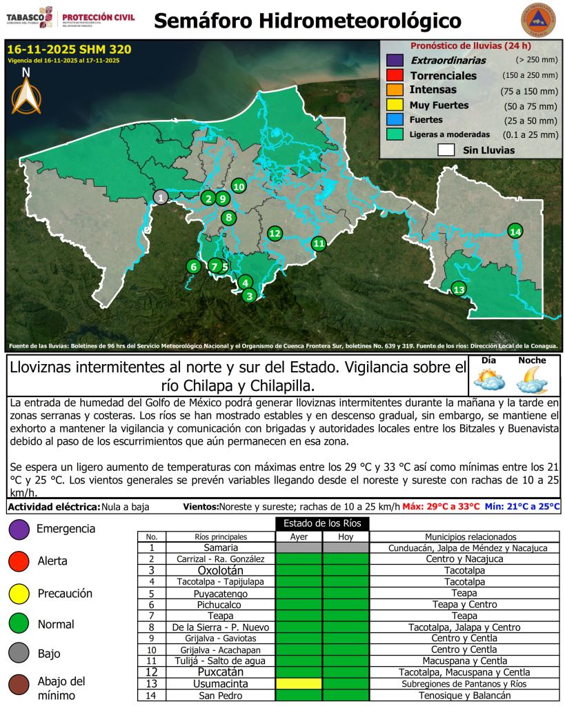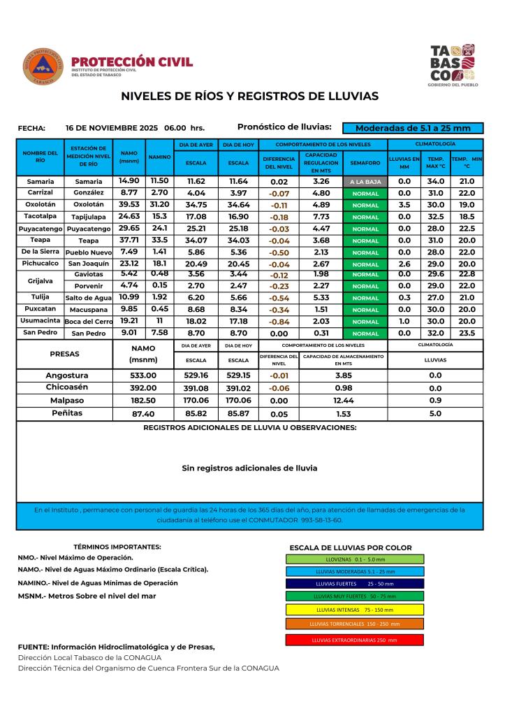 Noticias Compartir en: ¡Enlace copiado! Público General | 16 Noviembre, 2025 Semáforo Hidrometeorológico y Niveles de Ríos - 16/11/2025
