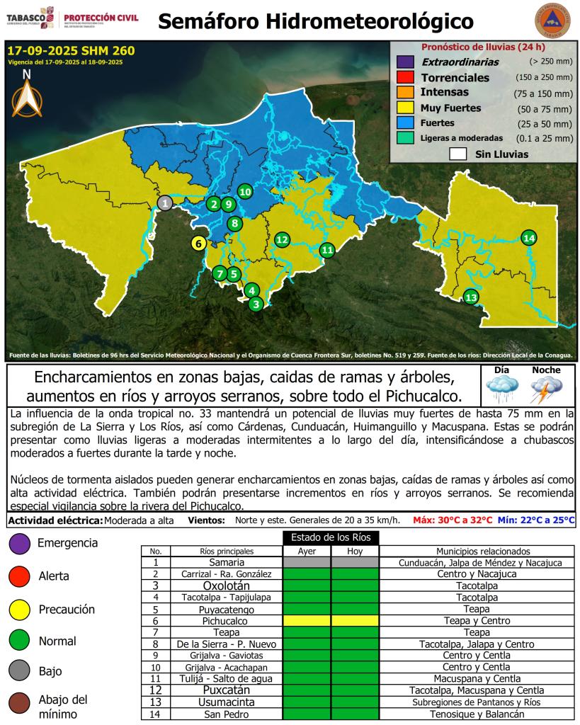 Semáforo Hidrometeorológico y Niveles de Ríos - 17/09/2025