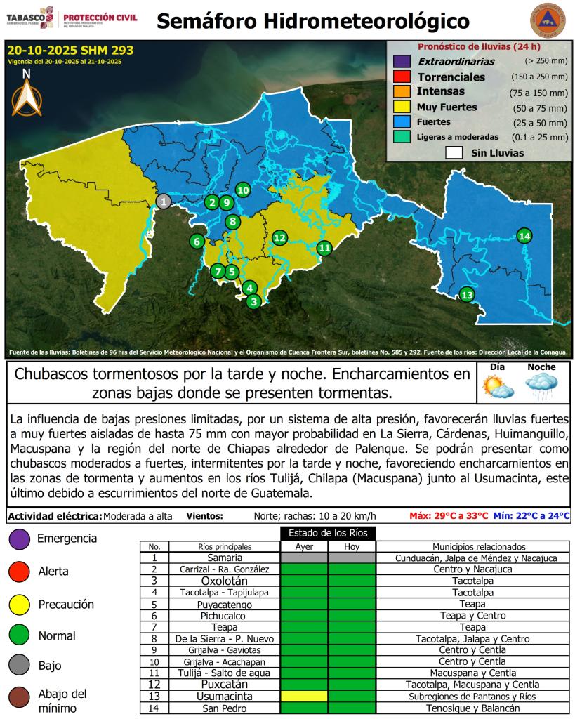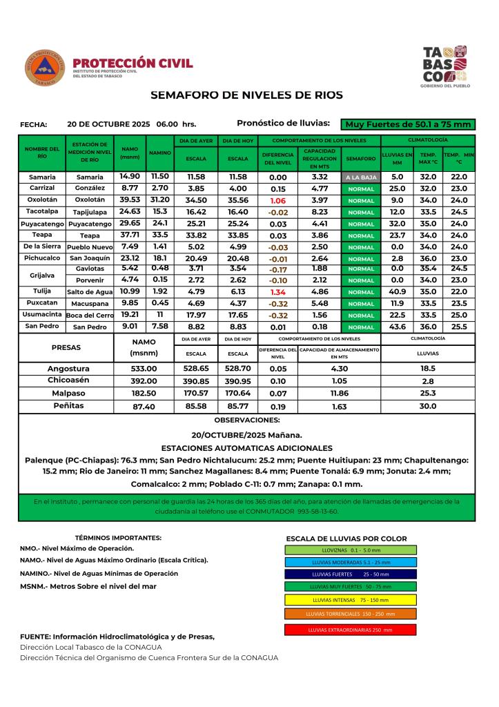 Semáforo Hidrometeorológico y Niveles de Ríos - 20/10/2025