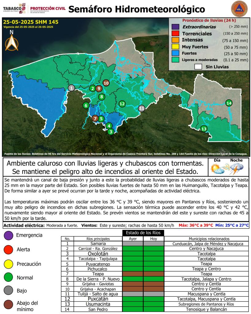 Noticias Compartir en: ¡Enlace copiado! Público General | 25 Mayo, 2025 Semáforo Hidrometeorológico y Niveles de Ríos - 25/05/2025