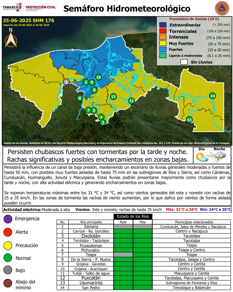 Noticias Compartir en: ¡Enlace copiado! Público General | 25 Junio, 2025 Semáforo Hidrometeorológico y Niveles de Ríos - 25/06/2025