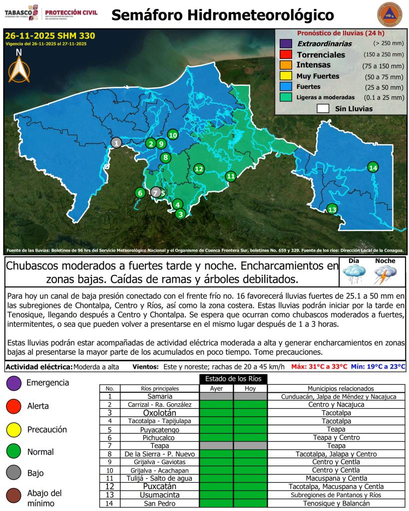 Semáforo Hidrometeorológico y Niveles de Ríos - 26/11/2025