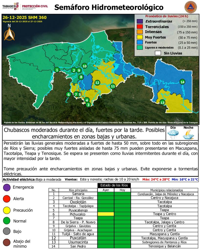 Noticias Compartir en: ¡Enlace copiado! Público General | 26 Diciembre, 2025 Semáforo Hidrometeorológico y Niveles de Ríos - 26/12/2025