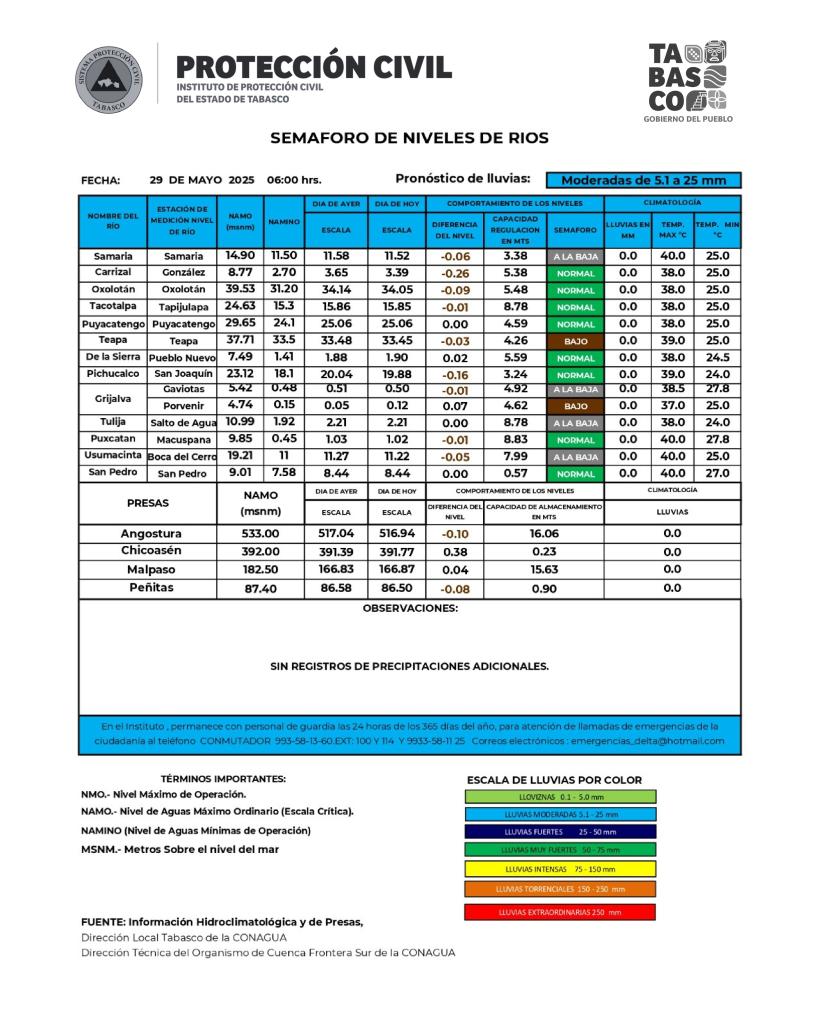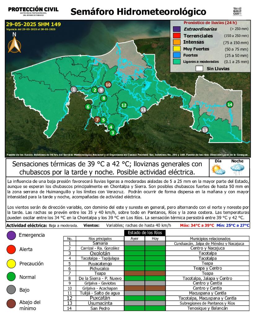 Semáforo Hidrometeorológico y Niveles de Ríos - 29/05/2025