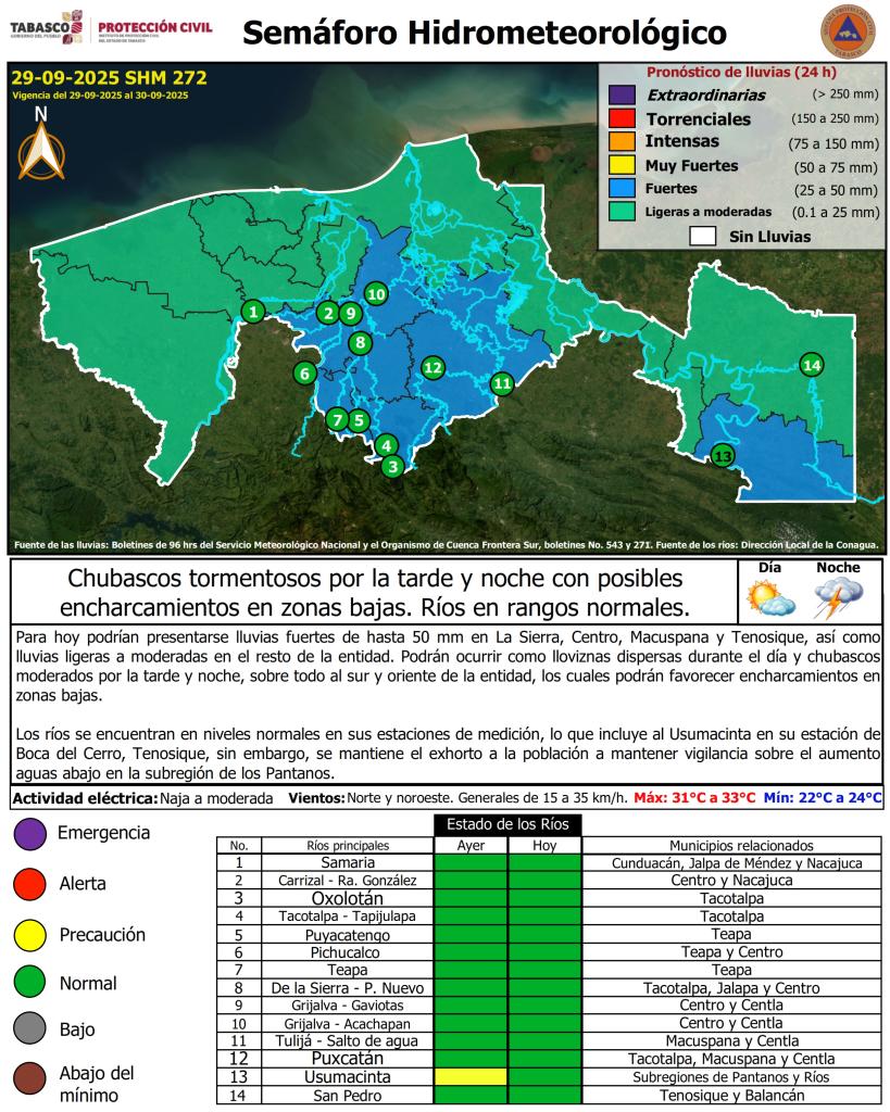 Semáforo Hidrometeorológico y Niveles de Ríos - 29/09/2025