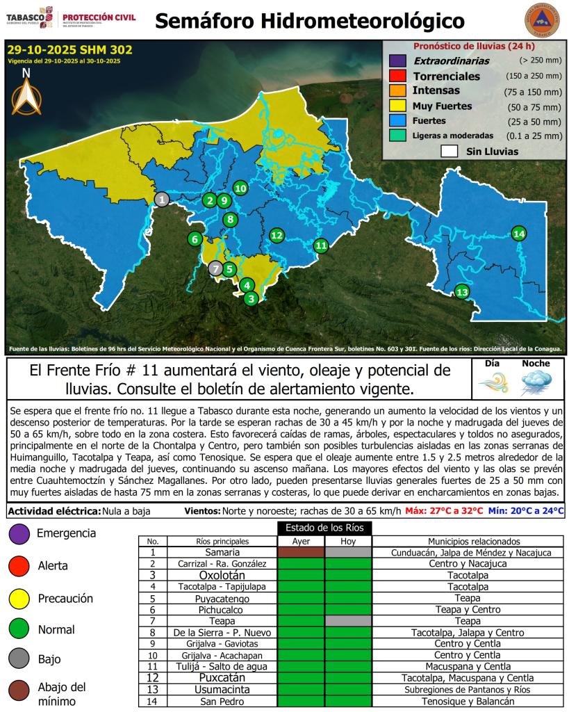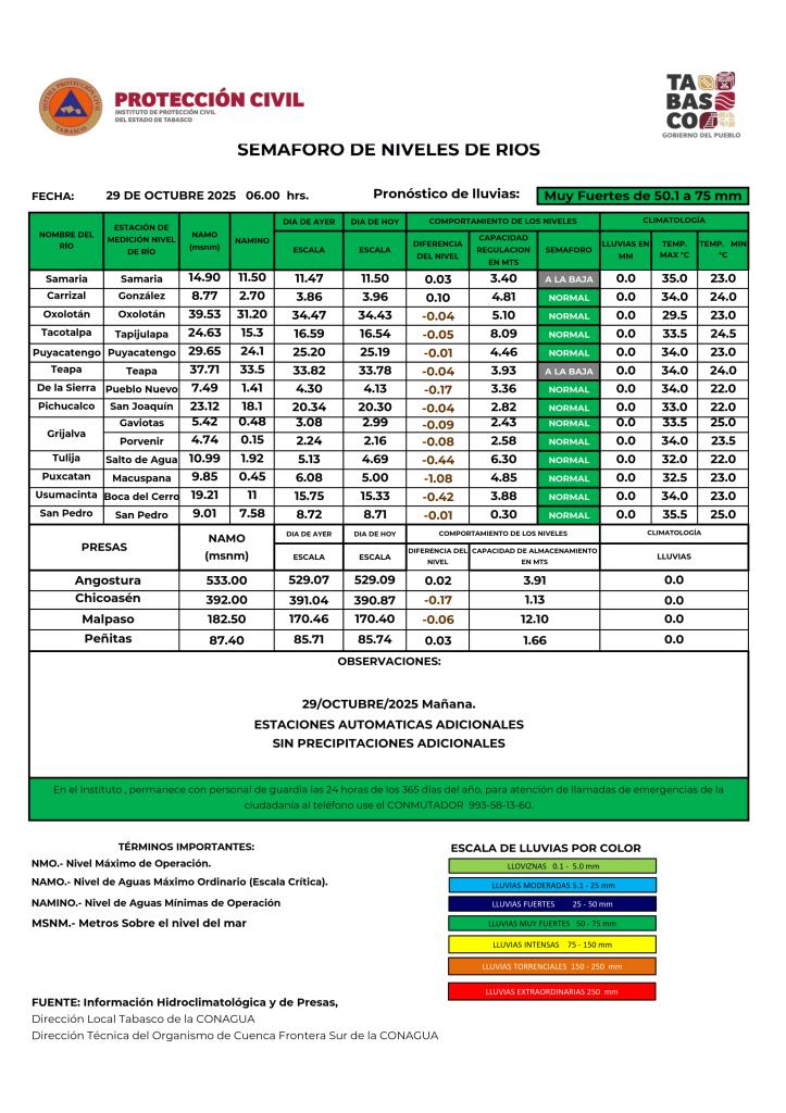 Noticias Compartir en: ¡Enlace copiado! Público General | 29 Octubre, 2025 Semáforo Hidrometeorológico y Niveles de Ríos - 29/10/2025