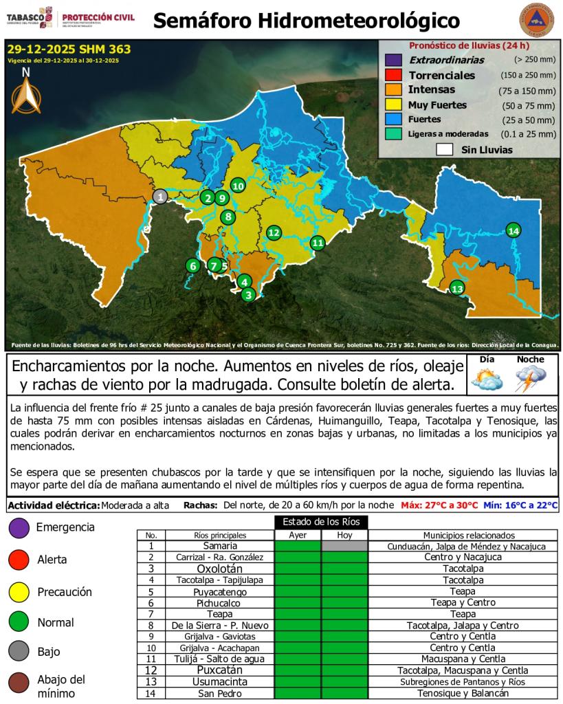 Noticias Compartir en: ¡Enlace copiado! Público General | 29 Diciembre, 2025 Semáforo Hidrometeorológico y Niveles de Ríos - 29/12/2025