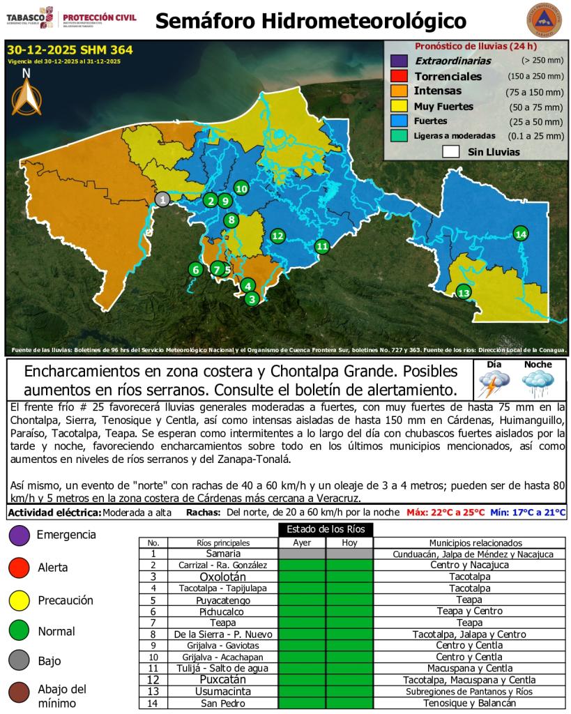 Semáforo Hidrometeorológico y Niveles de Ríos - 30/12/2025
