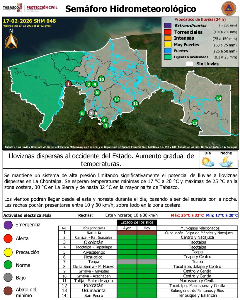 Noticias Compartir en: ¡Enlace copiado! Público General | 17 Febrero, 2026 Semáforo Hidrometereológico y Niveles de Ríos - 17/02/2026