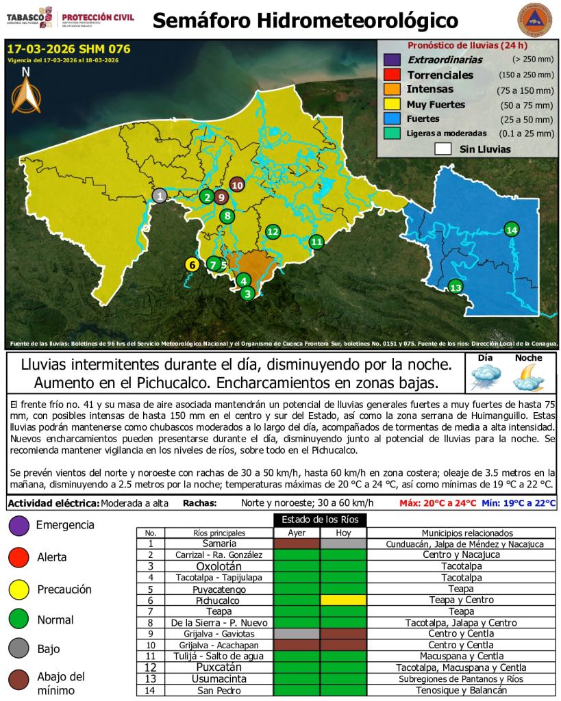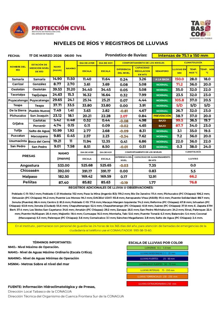Semáforo Hidrometereológico y Niveles de Ríos - 17/03/2026
