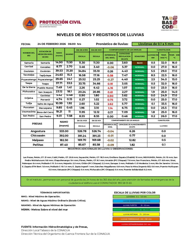 Semáforo Hidrometereológico y Niveles de Ríos - 24/02/2026