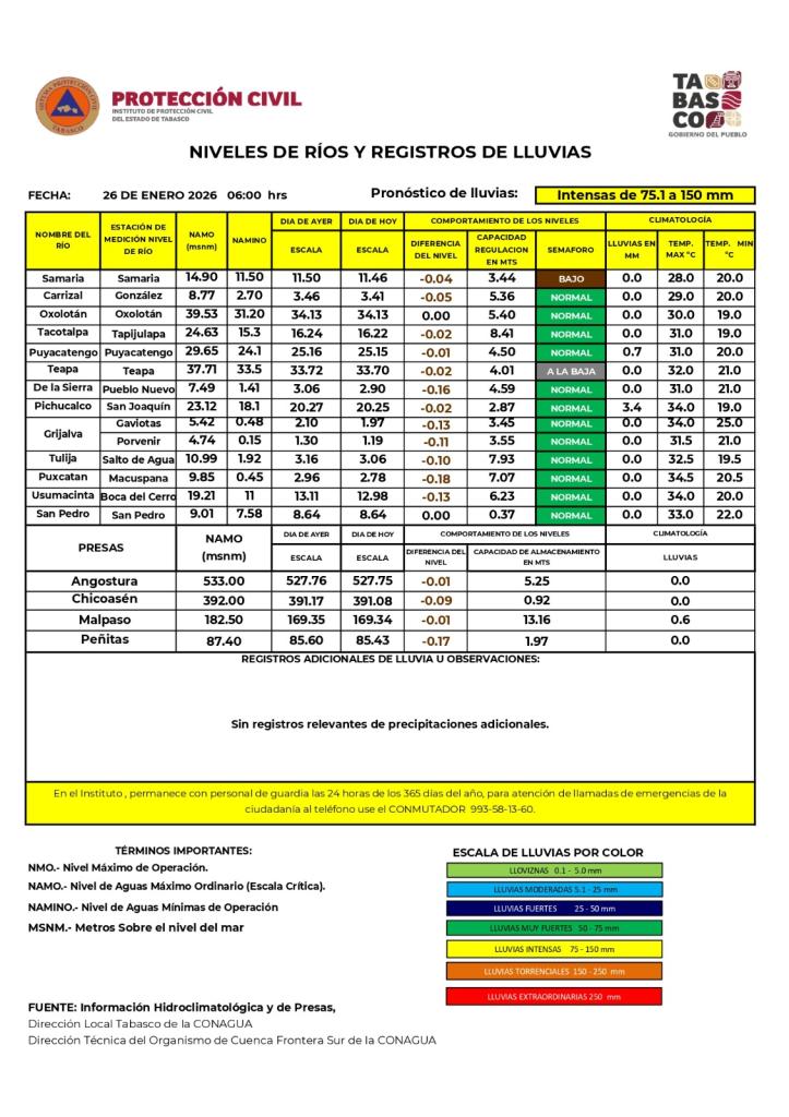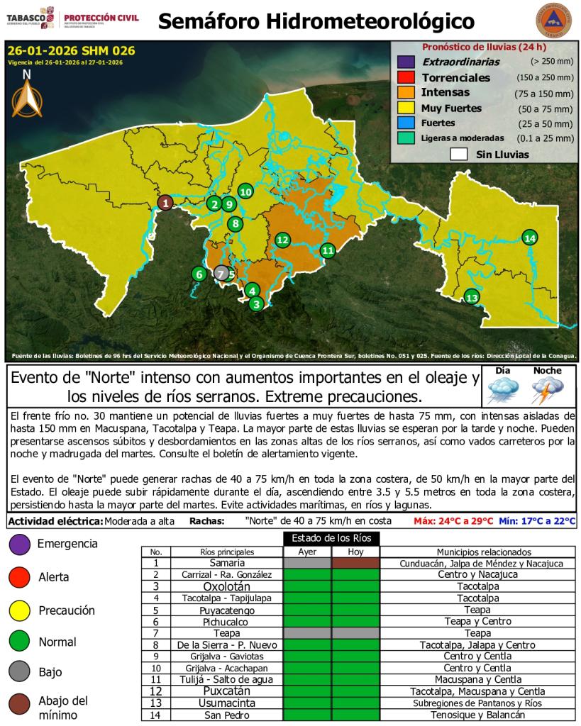 Semáforo Hidrometereológico y Niveles de Ríos - 26/01/2026