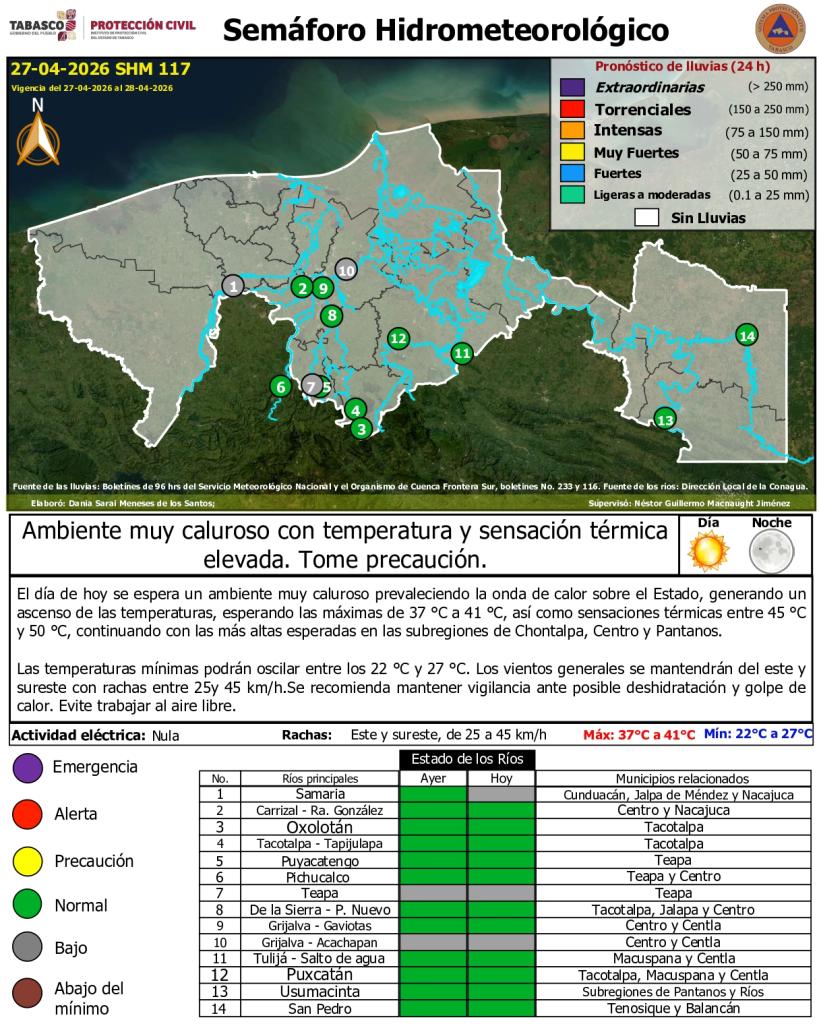 Noticias Compartir en: ¡Enlace copiado! Público General | 27 Abril, 2026 Semáforo Hidrometereológico y Niveles de Ríos - 27/04/2026