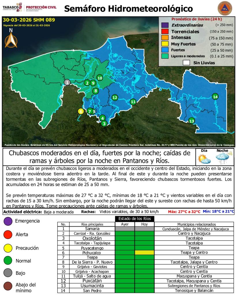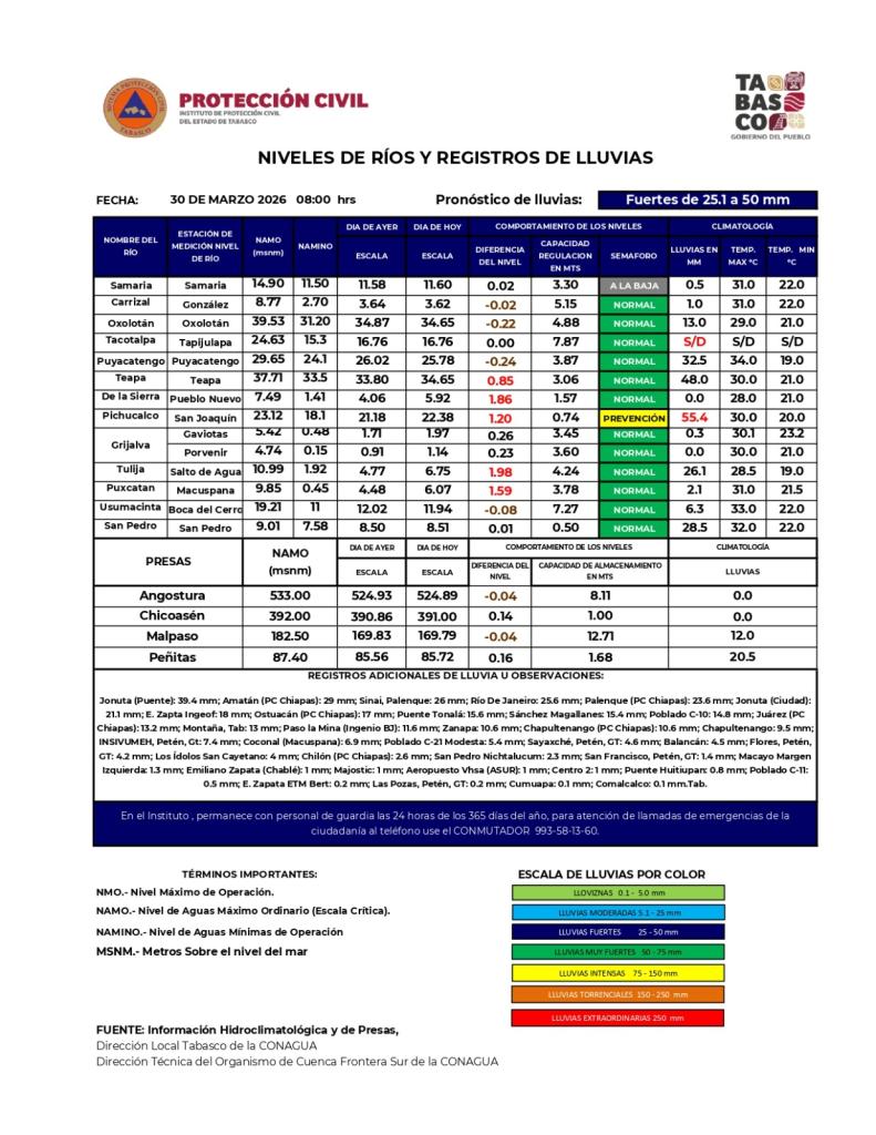 Noticias Compartir en: ¡Enlace copiado! Público General | 30 Marzo, 2026 Semáforo Hidrometereológico y Niveles de Ríos - 30/03/2026