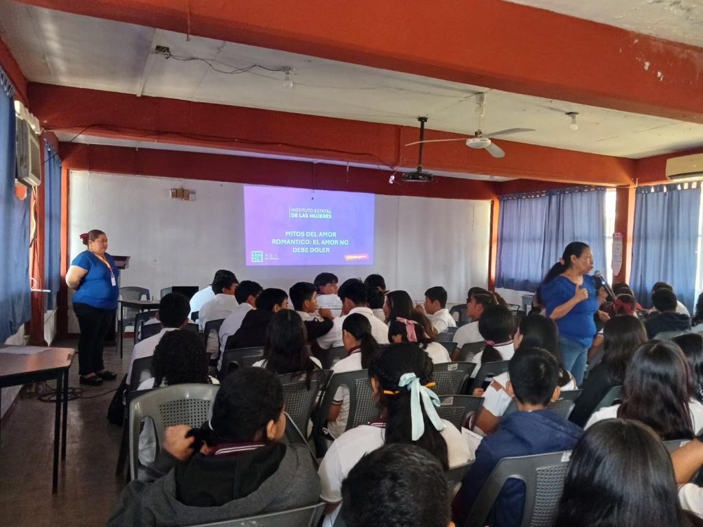 El Instituto Estatal de las Mujeres de Tabasco a través del Departamento de Capacitación de la Subdirección de Psicología y Salud Integral, acudió a la Escuela Secundaria Técnica 27 en Comalcalco. Para brindar un proceso formativo de sensibilización y concientización en “Reconocimiento de violencias y mitos del amor romántico” dirigido a estudiantes. El cual tuvo por objetivo facilitar la identificación de prácticas que están naturalizadas, pero que se constituyen en violencias y que se gestan en los noviazgos y con ello promover acciones para la prevención y superación progresiva de estas acciones vulneradoras de los derechos humanos de niñas, niños y adolescentes.