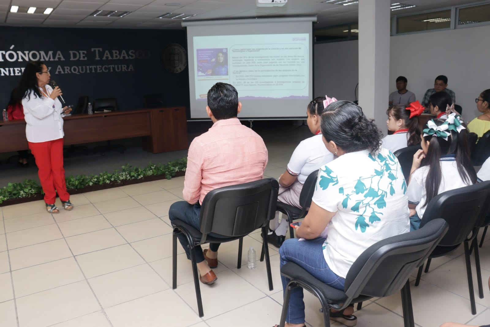 En el marco de la conmemoración del Dia Internacional de la Mujer y la Niña en la Cienci, el Instituto Estatal de las Mujeres de Tabasco en alianza con la División Académica de Ingeniería y Arquitectura de ñla UJAT sede Cunduacán, realizamos el Foro "la ciencia, las tecnologías, las ingenierías y las matemáticas sin las mujeres no van" el cual tiene por objetivo de fomentar la participación e incursión de las niñas, adolescentes y mujeres en la ciencia y en carreras universitarias que no han estado catalogadas para mujeres con el ánimo de desvirtuar imaginarios que impiden la entrada de las mujeres en estas profesiones y asi incidir sobre el papel decisivo de las mujeres en las comunidades cientificas y tecnológicas y promover el acceso de las mujeres y las niñas a la educación, la capacitación y la investigación en los ámbitos de la ciencia, la tecnología, la ingeniería y las matemáticas.